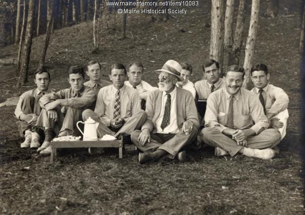Henry Richards and his camp counselors taking tea at Camp Merryweather.