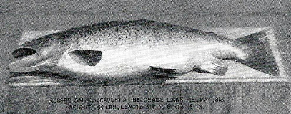 “Belgrade has the honor of producing the largest land-locked salmon in the United States during the past year. In May last, Rev. Edwin A. White caught the fish, which weighed 14 pounds and four ounces. The salmon, now mounted, adorns Mr. White’s library.”