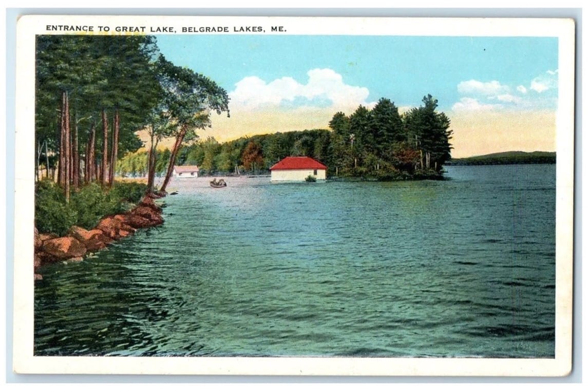 I was six years old. My schooling was very limited, and the farm work grinding. At sixteen, I left school for good and engaged myself to a farmer for $200 a year. Then I worked in a general store at $7.50 a week and quit that to enlist in the Spanish War.” [Spanish-American War of 1898] “When I came home, I started a little furnishing store at Freeport, Maine, and kept it going for five years, quitting to take a job on the road selling fishing tackle for a New York house. Belgrade Lakes was on my route—and there you have it. I liked the place, and made up my mind it would be a good summer region, and a good place to start a business in. That was thirteen years ago.” [In1910]. Ervin Bean purchased Bert Kelly’s sporting goods store on Main Street (see photo below).